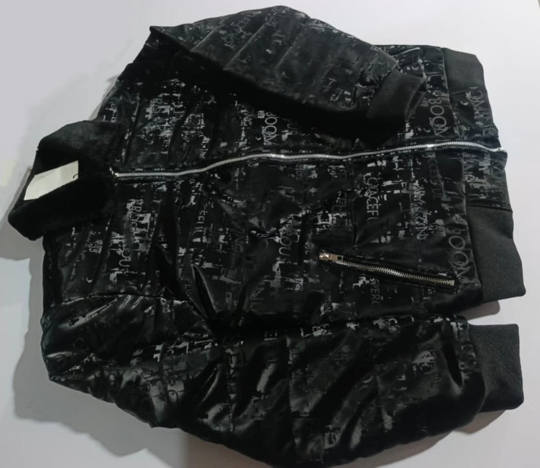 The Bharoosa Jet Black Gloss Bomber is built for those who want to make an impression. Featuring an all-over subtle text print on satin-finish fabric, this jacket offers a luxury-streetwear blend. Its soft inner lining and fitted cuffs make it ideal for chilly evenings or night outings.